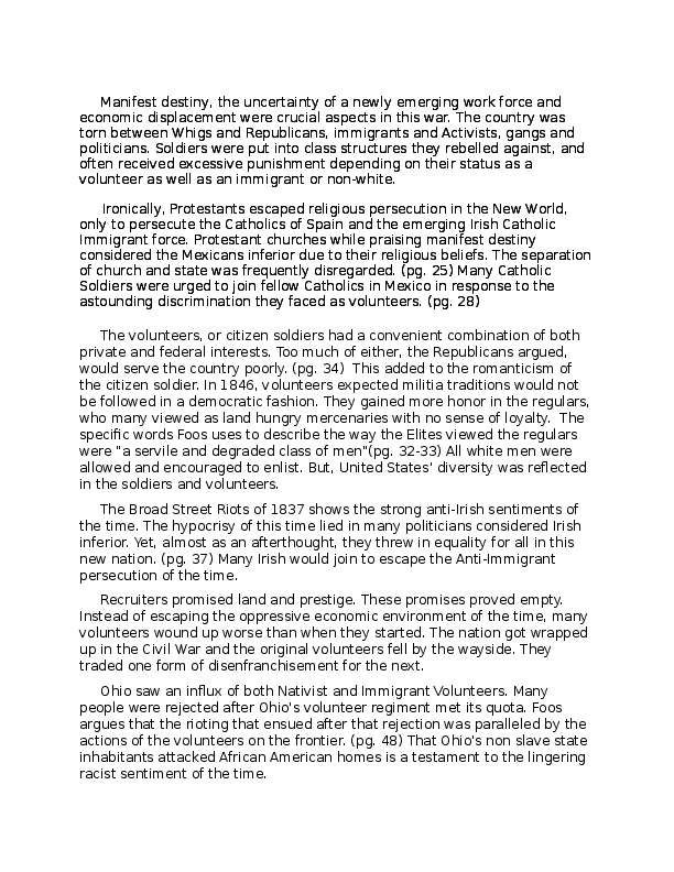 Manifest Destiny, The Uncertainty Of A Newly Emerging Work Force And Economic Displacement Were Crucial Aspects In This War.